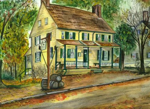This tavern in Old Salem (Winston Salem), North Carolina was constructed in 1888. Olga completed her painting numbered SE981210 on 10 December 1998. This watercolor painting is for sale at $295.00 in frame. Size 9.5x12.5 - Signed by artist with serial number SE981210